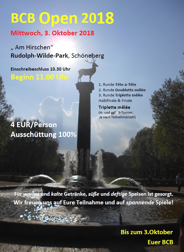 am Sonntag, 9. September habt ihr als Doublette Team die einmalige Chance als erste den Titel Berliner Meisterin zu gewinnen. In der Hoffnung unglaublich viele Frauen nach Charlottenburg zu locken, hat der LPVB es erstmals geschafft eine BM Frauen zu veranstalten. Diese wird ausgerichtet von boule devant auf dem Gelände des Vereins, Zillestraße 114. Dort wurde in diesem Jahr auch erstmals eine SM Serie nur für Frauen veranstaltet (besonderer Dank dafür an Gisela Sandow).