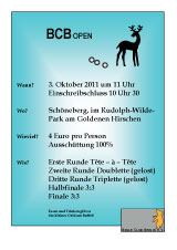 Nicht wie geplant am 3., sondern am 10. Oktober findet unser BCB-Turnier am Goldenen Hirschen...